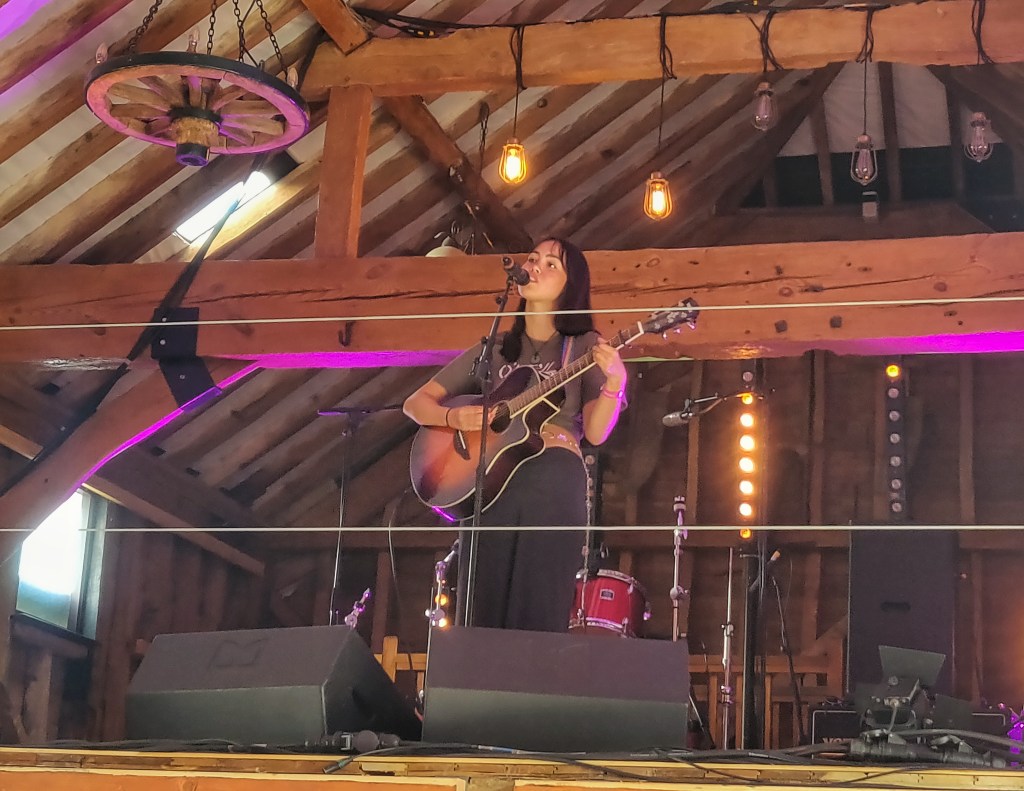 I sadly had to miss Amber Run this year to secure a spot in the wooden barn, as by this point everyone had a strong hunch who this year’s secret set would be. Yet knowing did nothing to spoil the sense of wonder as Sigrid took to the stage for a stripped back piano set. There have been a lot of ‘pinch me!’ moments at Barn over the years, moments you look back on and think “wow… I was there!“, and speaking for myself this topped them all. But between the fact that her set was cut short due to a medical incident in the crowd (quickly dealt with by staff, and with a patient and compliant crowd), and the fact that the wooden barn has a very limited capacity, I can’t be the only one keeping everything crossed that she’ll come back with her band next year to headline the main stage. But I’m getting ahead of myself, the night is still young. The gorgeous harmonies of The Staves were just the wind-down I needed from the adrenaline high. Such a joyful shot of nostalgia for 2015, when they headlined my first ever Barn, and touching to note how both they and the festival itself has grown over the years. As seeing artists grow is one of the festival’s guiding principles, who better to close 2023 than Holly Humberstone. Barn to her core, someone keeps coming back to the festival year after year, each performance more assured and engaging than her last, her headline set felt like an emotional victory lap for the whole farm family.
