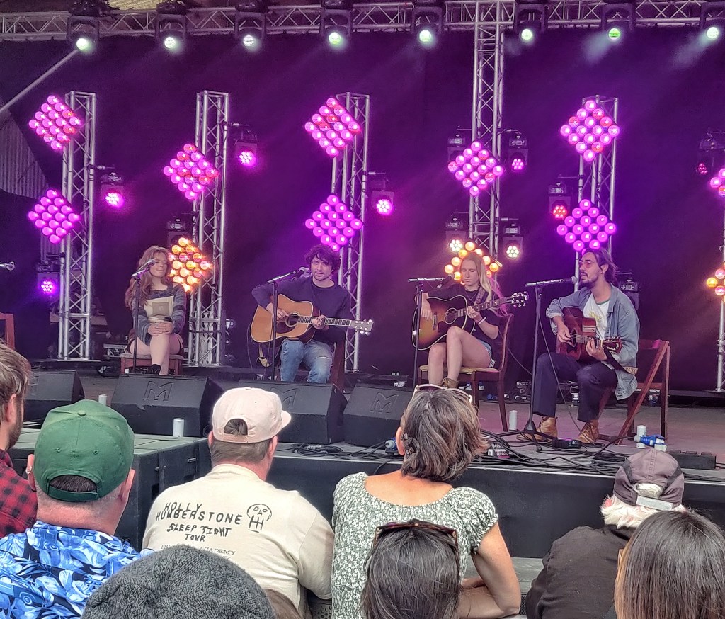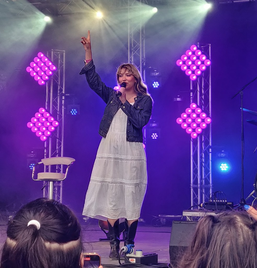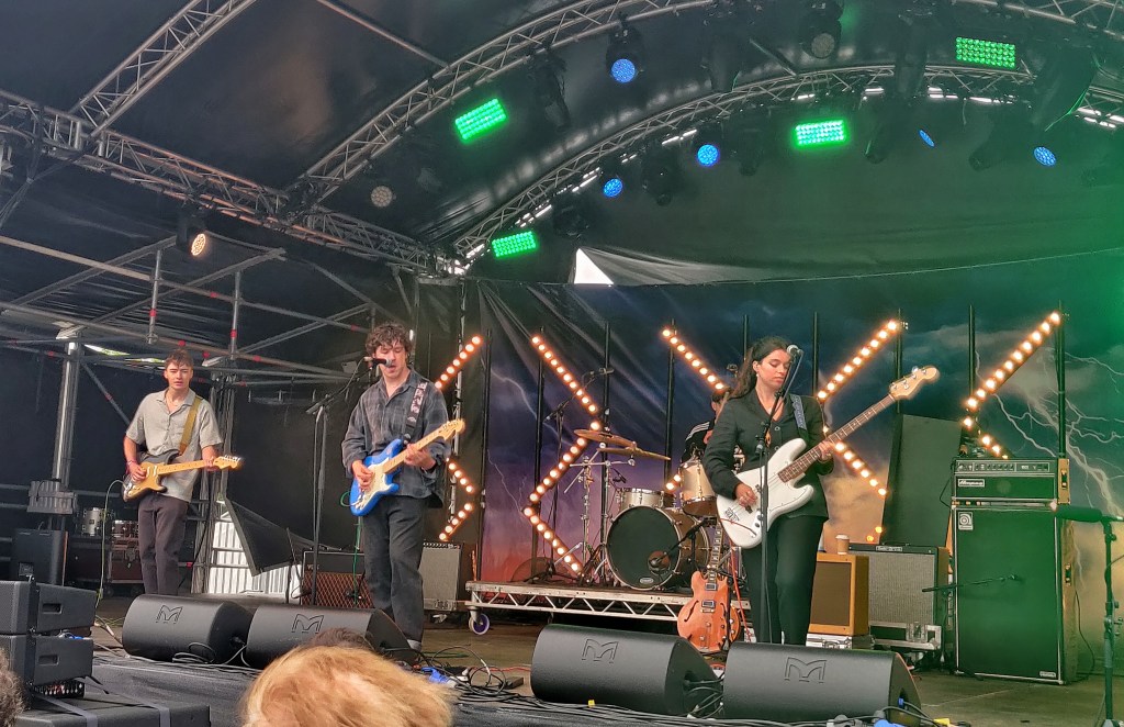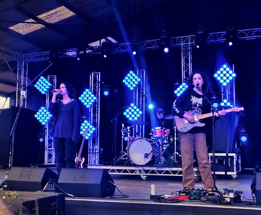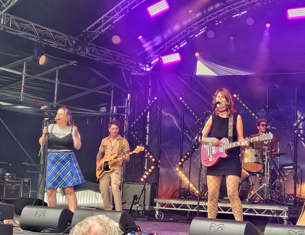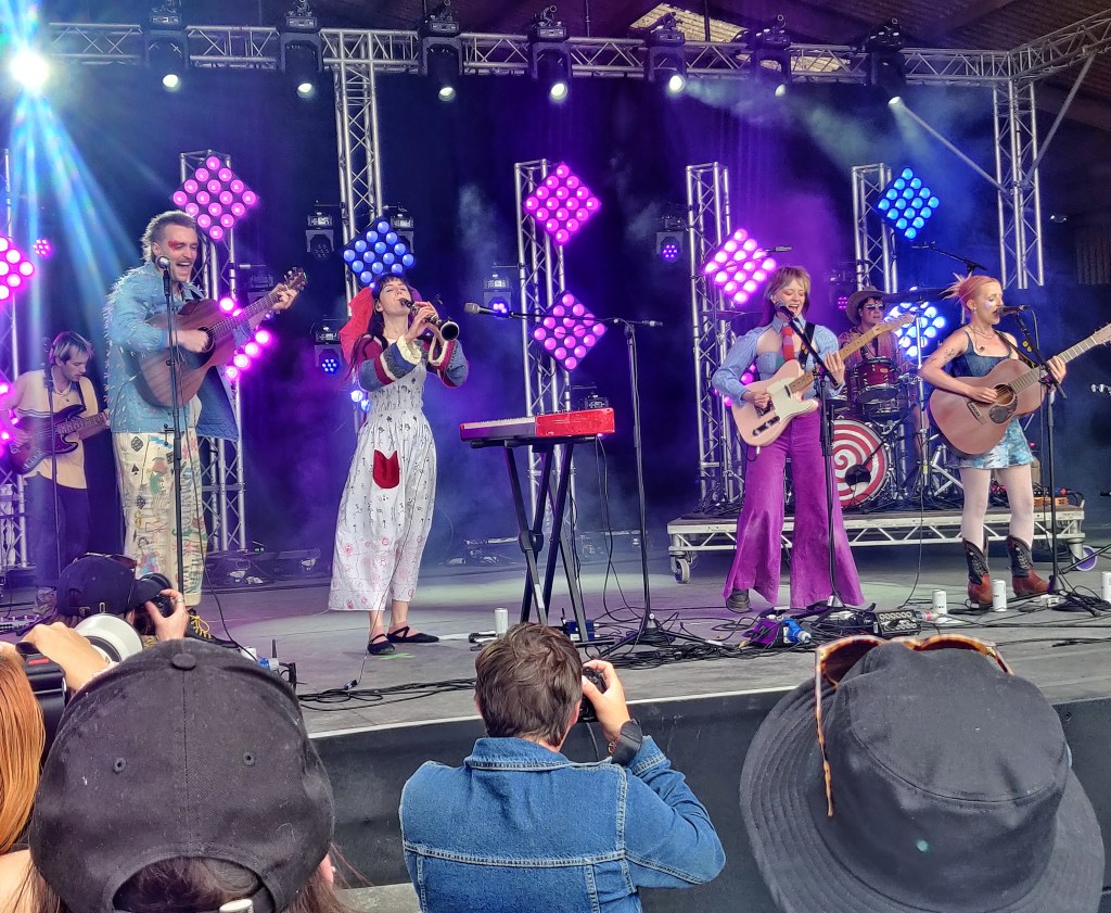 With the festival site opening up for the Friday crowd, it offered an opportunity to explore. The organisers really took on board what worked and what didn’t from last year’s overhaul. The tin barn main stage remained as a centrepiece, but a small tweak to the outdoor stage made it feel far more intimate while also letting crowds closer to everyone’s favourite farm residents; the ostriches! A bit sore from the first night of camping, Overpass were the energetic wake-up call I needed to start the day. I’ve had Dolores Forever recommended to me a few times and they did not disappoint. Wilson Phillips meets Wet Leg, following the mantra “existential dread, but make it party”. Cate was one of my favourite discoveries of last year, with her infectious smile and Swiftian songwriting, and this year she sounded even better. In the likely event you miss out on Eras Tour tickets, she might be the next best thing. The highlight of her set saw her duet Shania Twain’s ‘You’re Still The One’ with Tessa from Tommy Lefroy.