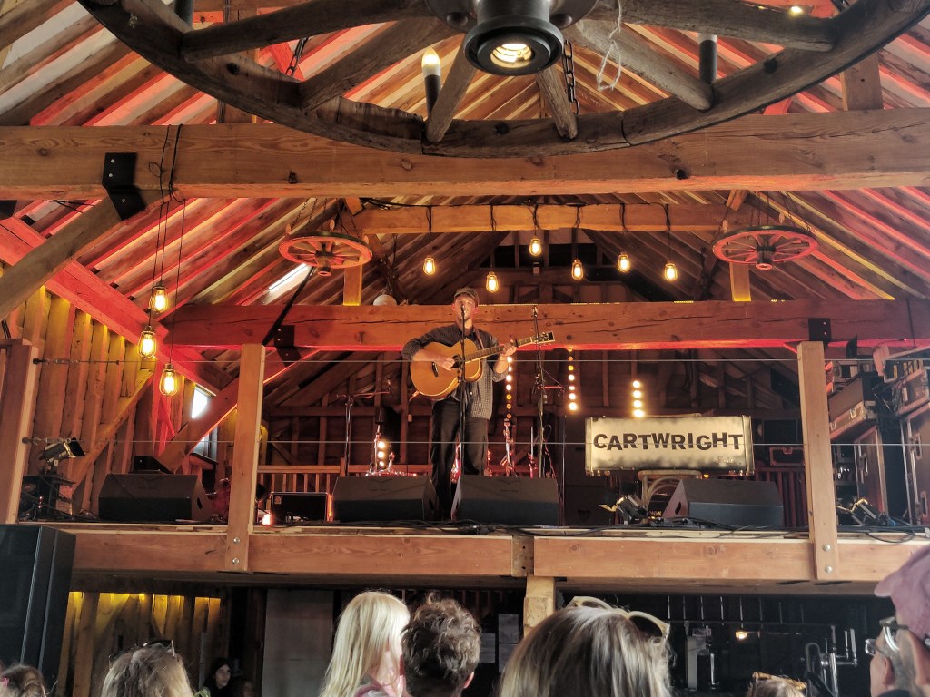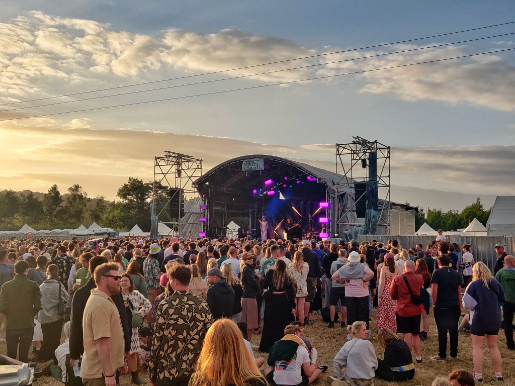 Rested up, ready for the bigger weekend crowds, and while some of the intimacy is lost, it’s great to see acts early in the day able to pull a bigger audience. The lovely Aine Dean opened up a busy barn stage, warming up the crowd with a cover of ‘Love Story’ before delving into her own well written heartbreak balladry. A band called Feet brought some britpop swagger to the main stage, while in the barn folk storyteller Cartwright had perhaps the most rapt and attentive crowd of the weekend and Etta Marcus delivered some dark and dreamy vibes. Pop prince Thomas Headon brought some serious Harry Styles energy to the farm, and more impressively could absolutely rock double denim. A festival is a marathon not a sprint however, and so I had a fairly steady Saturday afternoon. While I didn’t see as many acts as I’d have liked, I did get chance to catch up with a few familiar faces and old farm friends that I’ve made over the years. I think this year I also met more artists than any year prior, everyone from up-and-coming acts, to headliners, to a certain secret someone who’d make an appearance later in the weekend…
