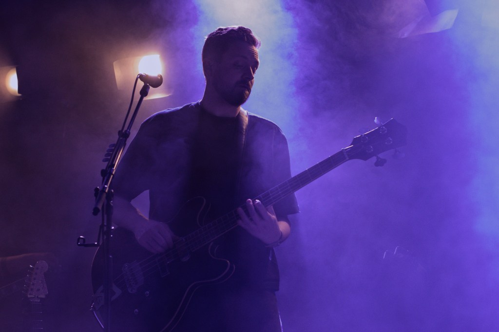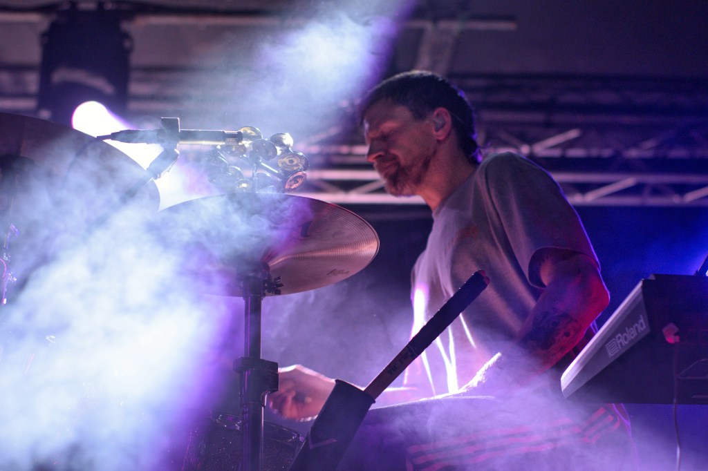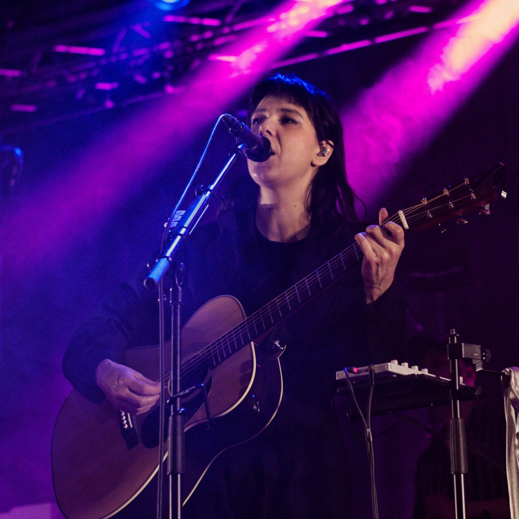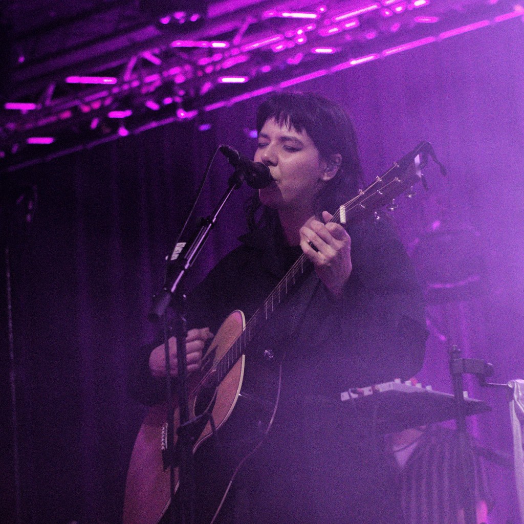 The stage was cloaked in shadow and drowning in haze as OMAM took their positions, especially fitting for the often dark and introspective atmosphere of their new record. Going into the gig I was unsure how cohesive their set would feel. How well the bright singalong folk of their early hits, the mature cinematic baroque pop of their new material, and the various forays into alt rock and electronica inbetween, would all sit alongside each other. Watching the band do their work was like standing on the shoreline watching the sea. One moment it’s a faintly rippling blanket, shimmering in the sunlight, the next it’s frothing and writhing as a distant rumble of thunder heralds an approaching storm. Yet it’s always the same sea. Whether it was the effervescent, light-hearted folk of ‘King and Lionheart’, the fittingly snappy alt rock of the anthemic ‘Alligator’, the rolling sea shanty vibes of ‘From Finner’, or the dreamy laidback groove of ‘The Towering Skyscraper at the End of the Road’ – in the moment it all felt like natural facets of the same band.