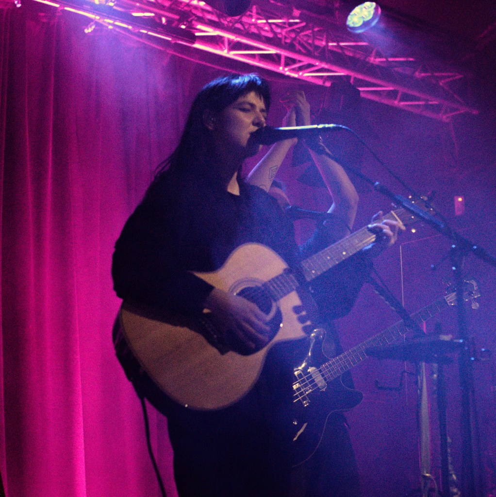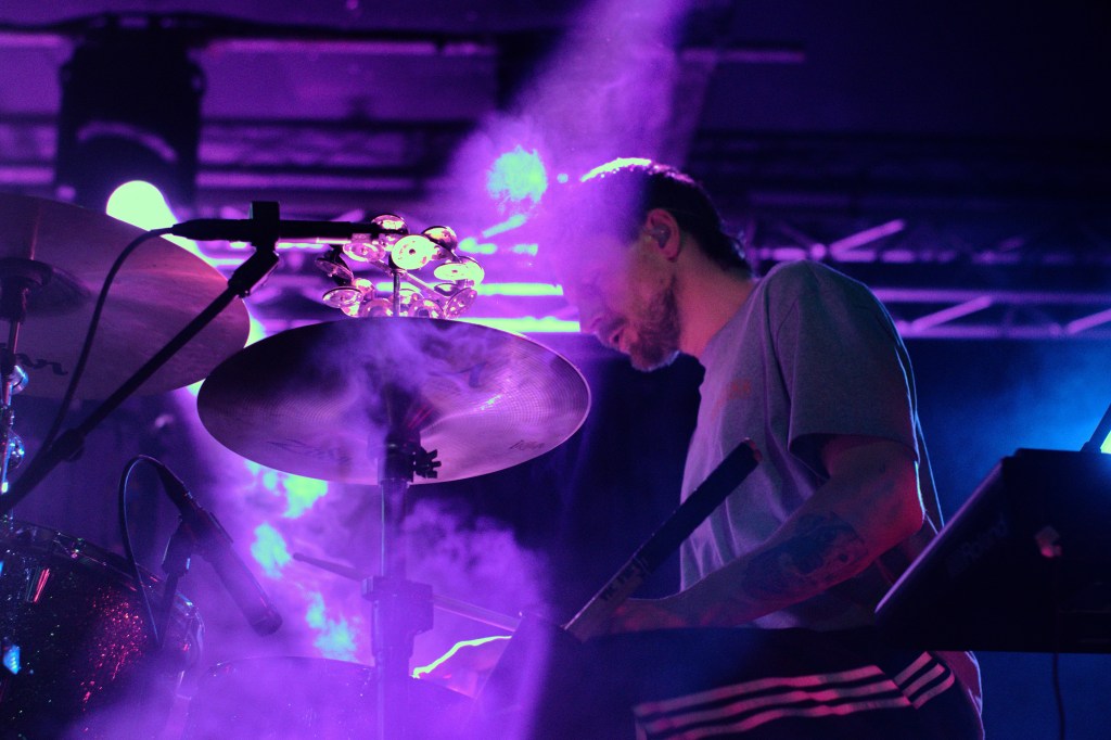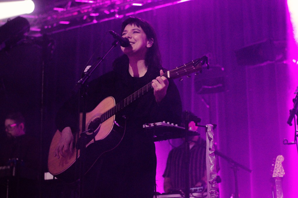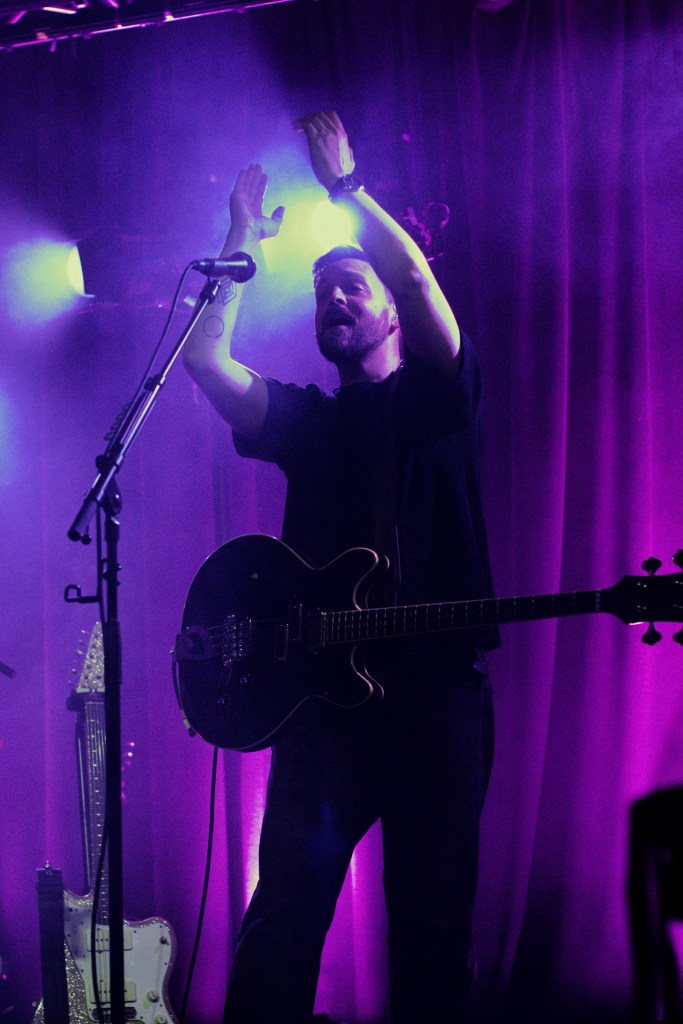 The stage was cloaked in shadow and drowning in haze as OMAM took their positions, especially fitting for the often dark and introspective atmosphere of their new record. Going into the gig I was unsure how cohesive their set would feel. How well the bright singalong folk of their early hits, the mature cinematic baroque pop of their new material, and the various forays into alt rock and electronica inbetween, would all sit alongside each other. Watching the band do their work was like standing on the shoreline watching the sea. One moment it’s a faintly rippling blanket, shimmering in the sunlight, the next it’s frothing and writhing as a distant rumble of thunder heralds an approaching storm. Yet it’s always the same sea. Whether it was the effervescent, light-hearted folk of ‘King and Lionheart’, the fittingly snappy alt rock of the anthemic ‘Alligator’, the rolling sea shanty vibes of ‘From Finner’, or the dreamy laidback groove of ‘The Towering Skyscraper at the End of the Road’ – in the moment it all felt like natural facets of the same band.